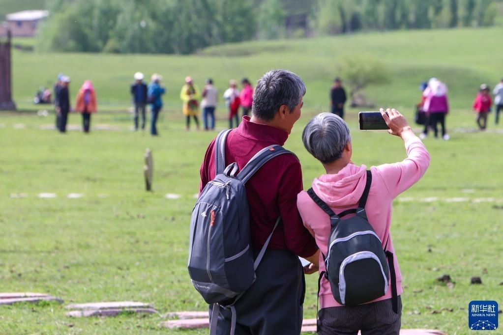 5月20日,游客在位于新疆新源縣的那拉提旅游風(fēng)景區(qū)觀光。   新華社記者 郝昭 攝