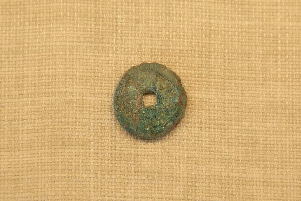 托庫(kù)孜薩來(lái)(唐王城)遺址發(fā)掘出土并展出的乾元重寶。(賀浩攝)