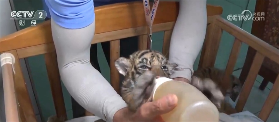 據(jù)了解,這5只虎寶寶兩只雄性三只雌性。由于虎媽媽年齡偏大、體質(zhì)偏弱,加之習(xí)性暴躁,在產(chǎn)下5只虎寶寶后不久便不再照顧它們。5只虎寶寶生命體征極其脆弱,隨時可能夭折,為此,飼養(yǎng)員采取了人工哺乳方式進(jìn)行喂養(yǎng)。