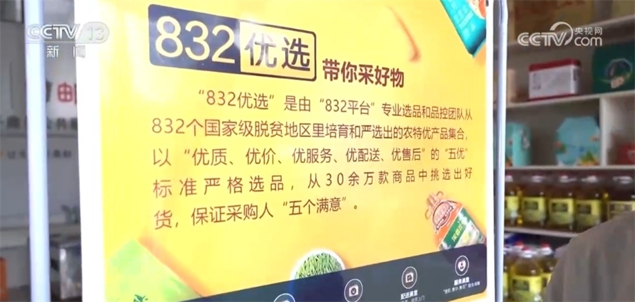 總臺(tái)央視記者 蔣樹(shù)林:這里是永順當(dāng)?shù)氐囊粋€(gè)農(nóng)村電商公共服務(wù)中心,很多“土特產(chǎn)”都通過(guò)“832平臺(tái)”走出大山,擺上貨架的產(chǎn)品都要嚴(yán)格符合五優(yōu)標(biāo)準(zhǔn),即優(yōu)質(zhì)、優(yōu)價(jià)、優(yōu)服務(wù),特別是優(yōu)配送、優(yōu)售后。