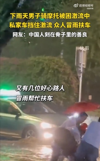 ·小車(chē)擋住激流后,眾人救回被困摩托,網(wǎng)友稱這就是中國(guó)人刻在骨子里的善良。