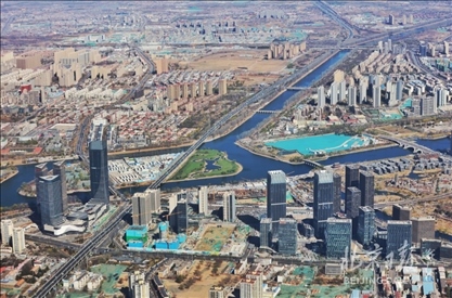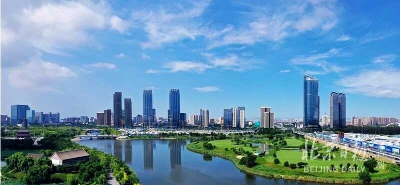 今天,古塔腳下,新城崛起。登臨五河交匯處的高樓觀景平臺(tái),憑欄眺望,只見(jiàn)運(yùn)河水道兩側(cè),現(xiàn)代化樓宇鱗次櫛比。這里是城市副中心運(yùn)河商務(wù)區(qū)所在地,20679家注冊(cè)企業(yè)入駐、包括國(guó)家級(jí)綠色交易所在內(nèi)的一批重大項(xiàng)目相繼落戶,為其注入勃發(fā)生機(jī)。