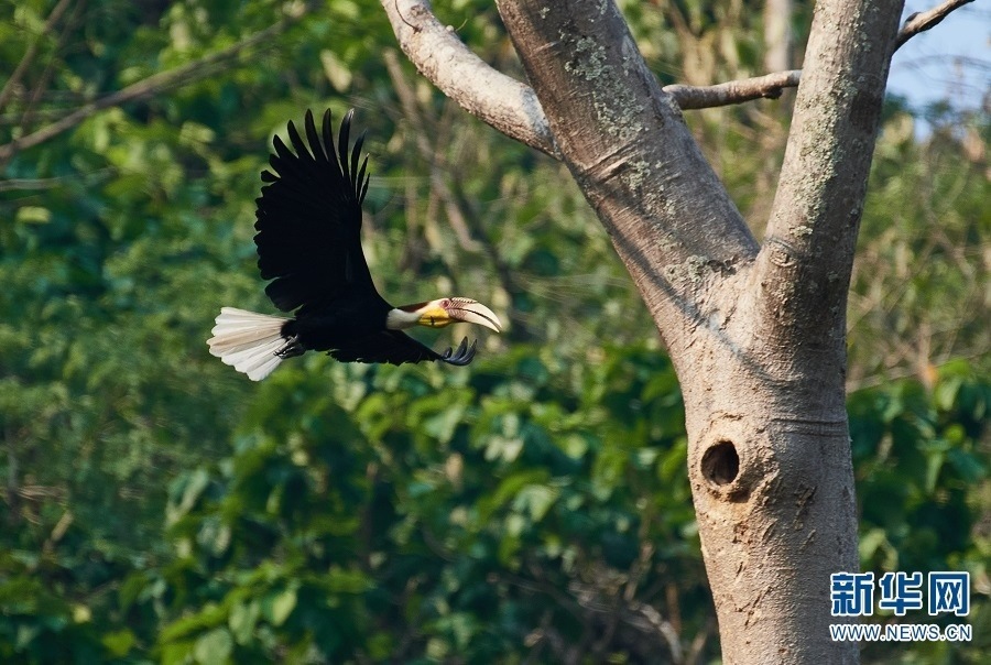 花冠皺盔犀鳥(niǎo)(5月1日攝)。新華網(wǎng)發(fā)(郭康 攝)
