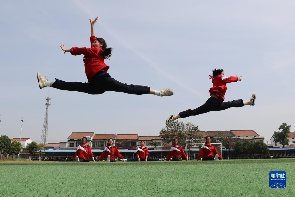 5月23日,河南省焦作市溫縣實(shí)驗(yàn)高中高三學(xué)生在操場上做活動(dòng)減壓。