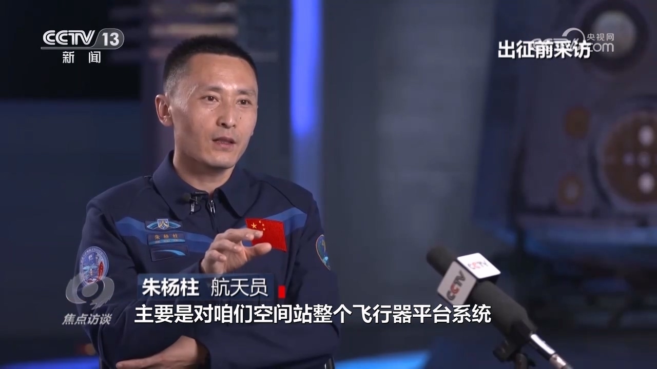 航天員朱楊柱:“我作為航天飛行工程師,主要對空間站整個飛行器平臺系統(tǒng)進(jìn)行日常維護(hù)、保養(yǎng),同時也要照顧好很多試驗、實驗和一些艙內(nèi)外的載荷、科學(xué)機(jī)柜?!?/p>