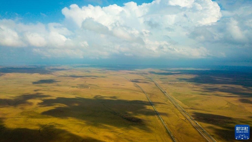 這是5月30日拍攝的內(nèi)蒙古錫林郭勒盟蘇尼特右旗境內(nèi)的草原風(fēng)光(無人機(jī)照片)。