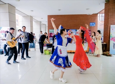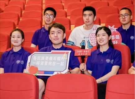 5月31日,“石榴籽 祖國行”新疆大學(xué)代表團(tuán)來到南開大學(xué)。在故事分享會(huì)上,王彥臣、李姝洋、迪力亞爾·迪力夏提同學(xué)向南開大學(xué)青年學(xué)子講述了“斷臂男孩”阿卜杜外力·阿卜杜拉、“黨徽大叔”阿布都加帕爾·猛德和“時(shí)代楷?!崩R尼·巴依卡的故事。在文藝大舞臺(tái)上,新疆大學(xué)代表團(tuán)各民族同學(xué)通過展示新疆特色舞蹈“木卡姆”、民族器樂“庫布孜”,向南開大學(xué)師生展現(xiàn)大美新疆熱情好客、能歌善舞的地域特色。