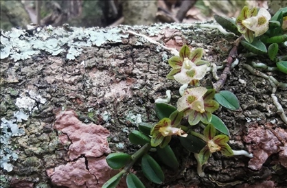 蘭科新物種——臥龍無(wú)柱蘭,于2021年11月發(fā)表于國(guó)際植物學(xué)期刊《北歐植物學(xué)》,是程躍紅和林紅強(qiáng)等人在轄區(qū)巡護(hù)監(jiān)測(cè)過(guò)程中發(fā)現(xiàn)的,以模式產(chǎn)地“臥龍”命名。該蘭科植物生長(zhǎng)在海拔2700米左右的陡峭崖壁上,植株高約19-22厘米,花期7-8月,莖為呈紫紅色,開(kāi)白色小花,中心為綠色,目前僅在大熊貓國(guó)家公園臥龍片區(qū)發(fā)現(xiàn)1個(gè)居群,約70株成熟個(gè)體,參照IUCN(世界自然保護(hù)聯(lián)盟)的標(biāo)準(zhǔn),臥龍無(wú)柱蘭被認(rèn)定為“極度瀕?!钡燃?jí)的植物。