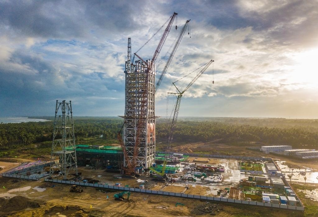 圖為建設(shè)中的海南商業(yè)航天發(fā)射場(chǎng)1號(hào)工位(無人機(jī)照片,5月12日攝)。 新華社記者蒲曉旭 攝