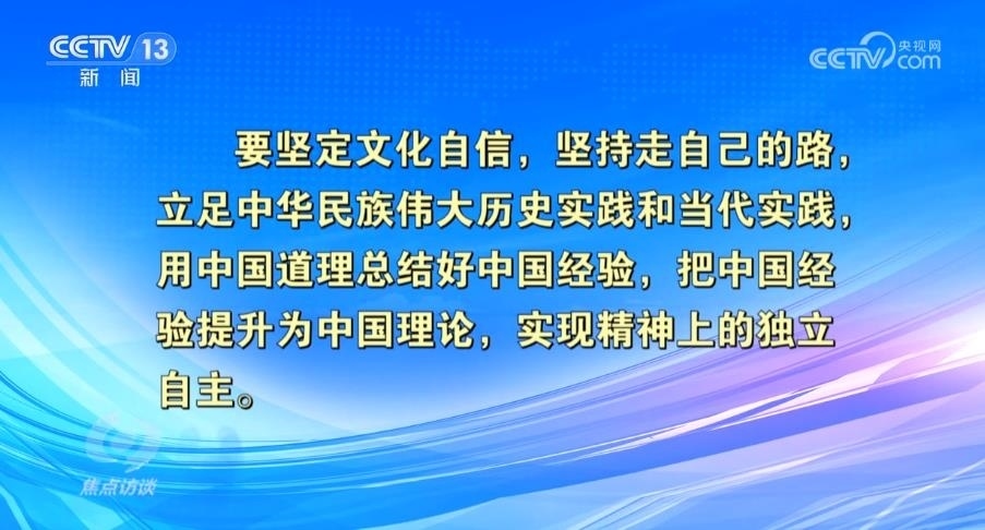 腳踏必由之路,譜寫時(shí)代華章。在新的歷史起點(diǎn)上,我們應(yīng)當(dāng)如何擔(dān)當(dāng)起新的文化使命,如何繼續(xù)推動(dòng)文化繁榮、建設(shè)文化強(qiáng)國(guó)、建設(shè)中華民族現(xiàn)代文明?習(xí)近平總書(shū)記提出了三點(diǎn)具體要求,要堅(jiān)定文化自信,堅(jiān)持走自己的路,立足中華民族偉大歷史實(shí)踐和當(dāng)代實(shí)踐,用中國(guó)道理總結(jié)好中國(guó)經(jīng)驗(yàn),把中國(guó)經(jīng)驗(yàn)提升為中國(guó)理論,實(shí)現(xiàn)精神上的獨(dú)立自主。要秉持開(kāi)放包容,堅(jiān)持馬克思主義中國(guó)化時(shí)代化,傳承發(fā)展中華優(yōu)秀傳統(tǒng)文化,促進(jìn)外來(lái)文化本土化,不斷培育和創(chuàng)造新時(shí)代中國(guó)特色社會(huì)主義文化。要堅(jiān)持守正創(chuàng)新,以守正創(chuàng)新的正氣和銳氣,賡續(xù)歷史文脈、譜寫當(dāng)代華章。