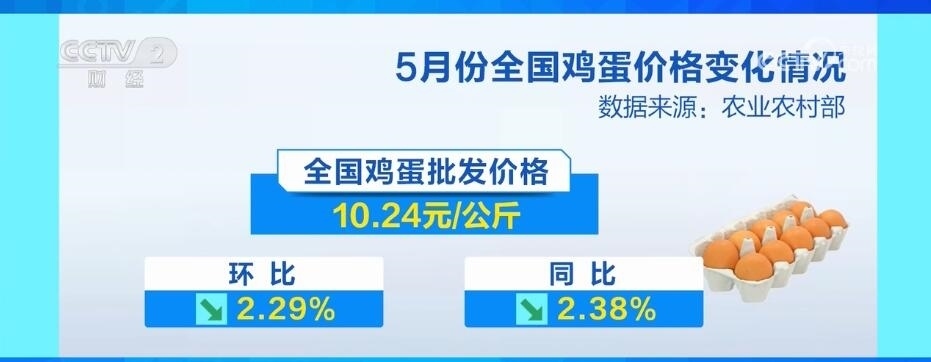據(jù)農(nóng)業(yè)農(nóng)村部監(jiān)測(cè),5月份全國(guó)雞蛋批發(fā)價(jià)格為每公斤10.24元,環(huán)比下降2.29%,同比下降2.38%。由于蛋價(jià)下降,5月份,全國(guó)蛋雞養(yǎng)殖環(huán)節(jié)每斤雞蛋的平均盈利在0.35元左右,比上月每斤雞蛋的盈利減少了0.15元,仍處于盈利區(qū)間,屬于歷史同期中等水平。
