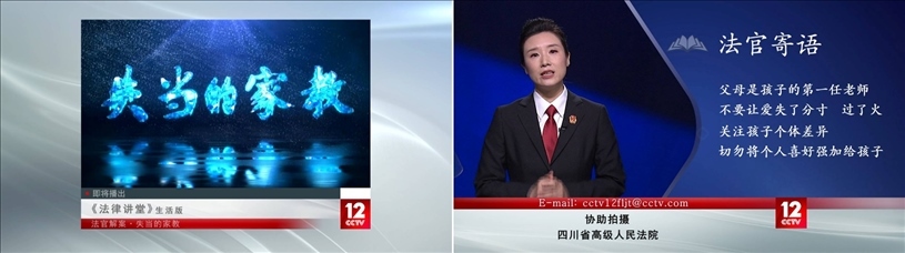 6?8?至14?,《法律講堂》欄?即將推出7期“法官解案”系列節(jié)?。節(jié)?立足《中華??共和國家庭教育促進(jìn)法》,緊扣民眾關(guān)心的熱點(diǎn)話題,精選14個(gè)代表性真實(shí)案例,由新疆、四川、云南3地優(yōu)秀法官主講?傾力講述,以法官的獨(dú)特視?解讀每個(gè)判決背后的判案邏輯。