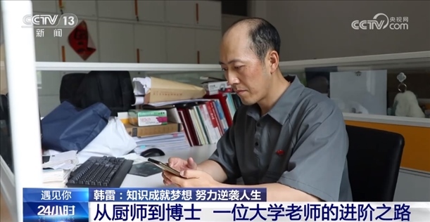 今年42歲的大學(xué)老師韓雷講述自己17年的求學(xué)故事:從廚師到自考??啤⒈究圃俚娇既∧祥_大學(xué)博士。