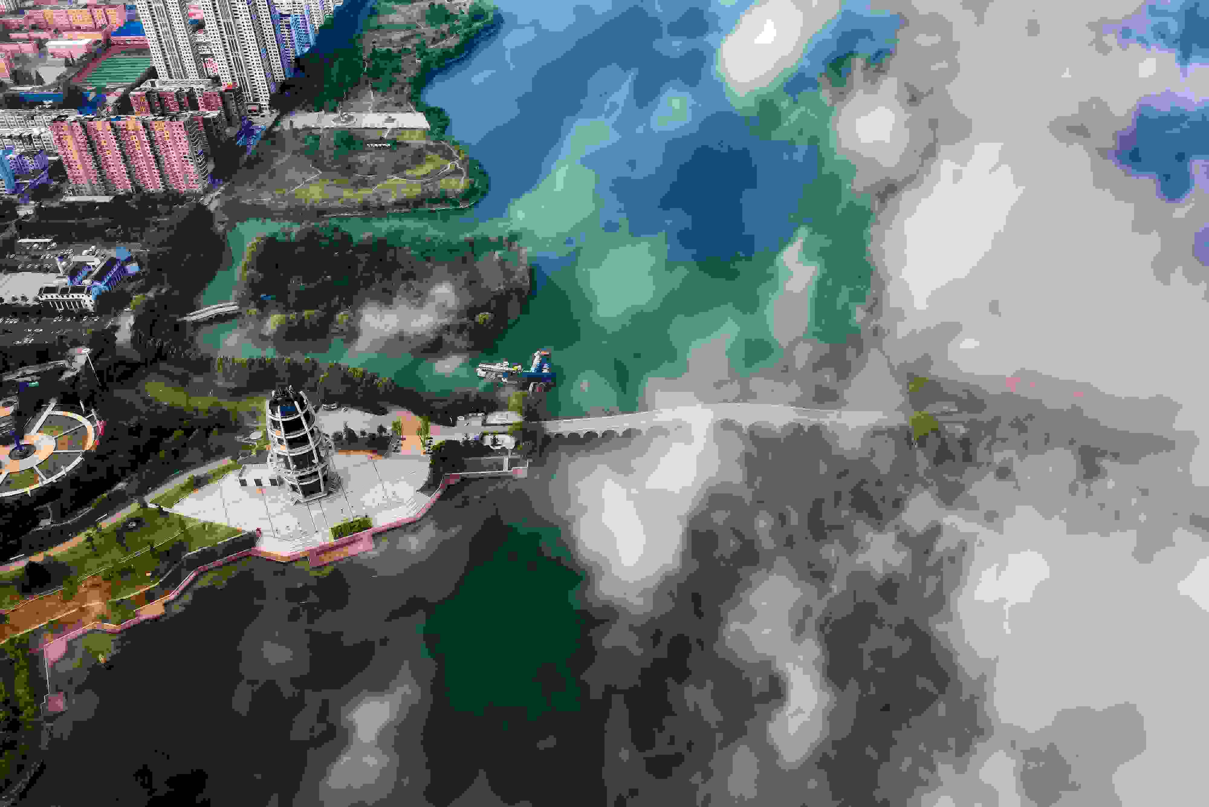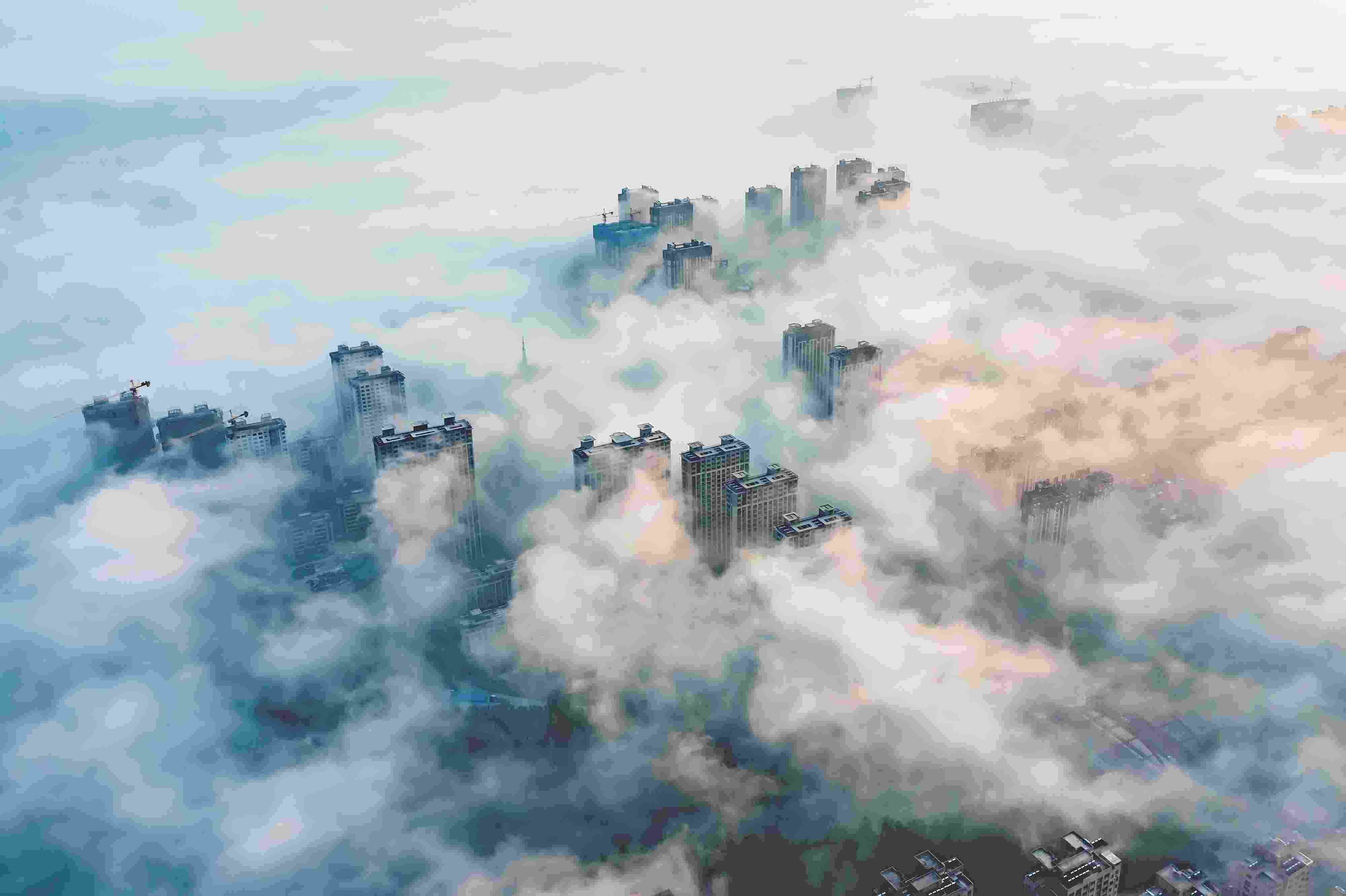 2023年6月11日,江蘇連云港東海縣,城市上空云霧繚繞,蔚為壯觀。 視覺中國