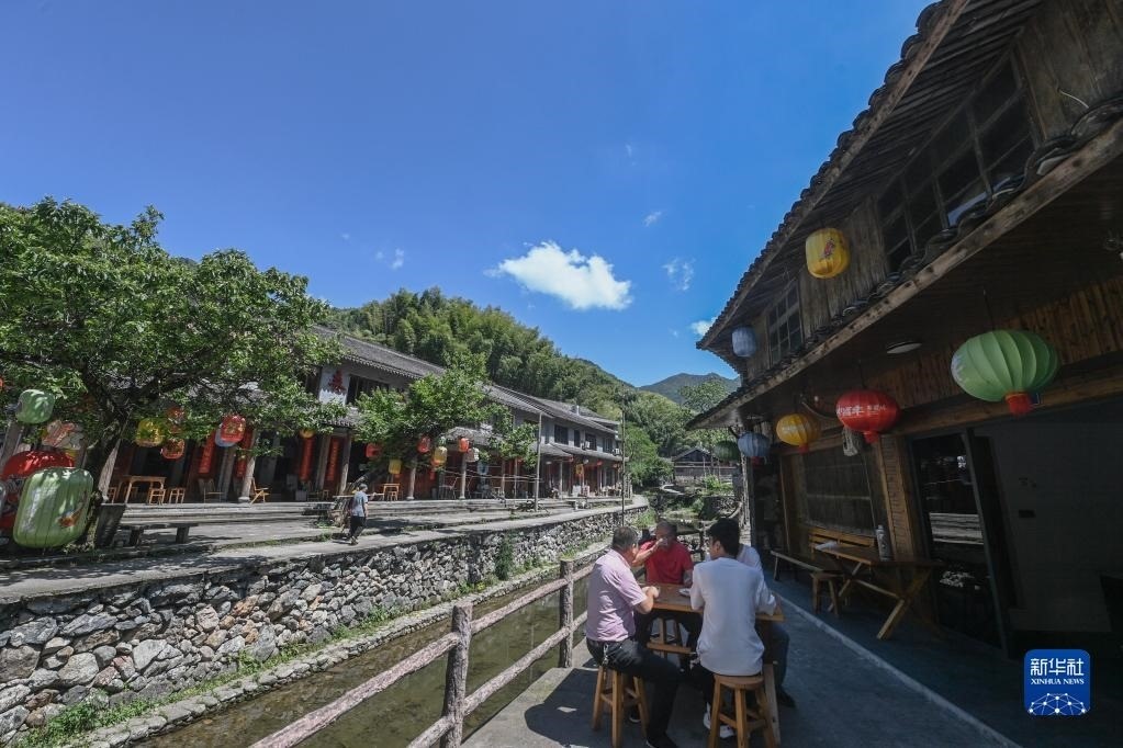人們?cè)谡憬_(tái)州黃巖區(qū)嶼頭鄉(xiāng)布袋坑村的溪水旁喝茶(5月30日攝)。近年來(lái),嶼頭鄉(xiāng)堅(jiān)持黨建引領(lǐng),以全域旅游和美麗鄉(xiāng)村建設(shè)為重要抓手,引進(jìn)文化創(chuàng)意團(tuán)隊(duì),為鄉(xiāng)村旅游注入更加年輕化的元素,推進(jìn)特色民宿以及布袋山饅頭、溪坑魚(yú)等農(nóng)特產(chǎn)品的發(fā)展,帶動(dòng)鄉(xiāng)村振興和百姓共富。新華社記者 徐昱 攝