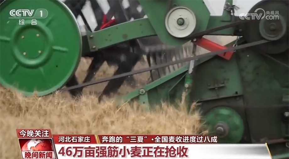 河北省石家莊市藁城區(qū)的46萬畝強(qiáng)筋小麥正在搶收,今年這里的小麥進(jìn)一步推行規(guī)?;N植、標(biāo)準(zhǔn)化生產(chǎn)、專業(yè)化收儲。