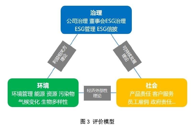 基于此,我們?cè)跇?gòu)建ESG評(píng)價(jià)模型時(shí),打破現(xiàn)有主流ESG評(píng)級(jí)體系重點(diǎn)關(guān)注ESG風(fēng)險(xiǎn)管理(即企業(yè)的負(fù)外部性)的常規(guī)思路,將企業(yè)經(jīng)營(yíng)發(fā)展對(duì)社會(huì)環(huán)境的正向價(jià)值與貢獻(xiàn)(即企業(yè)的正外部性)納入考量,創(chuàng)新構(gòu)建了包含“環(huán)境、社會(huì)、治理”三個(gè)維度且兼顧風(fēng)險(xiǎn)管理和社會(huì)價(jià)值貢獻(xiàn)的ESG評(píng)價(jià)模型(見(jiàn)圖3)。