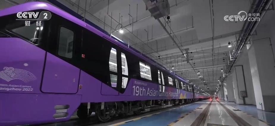 在杭州,5列亞運主題地鐵列車正式投入運營。車身以及車廂內(nèi)的座椅、扶手,均為亞運會色系中的“虹韻紫”。
