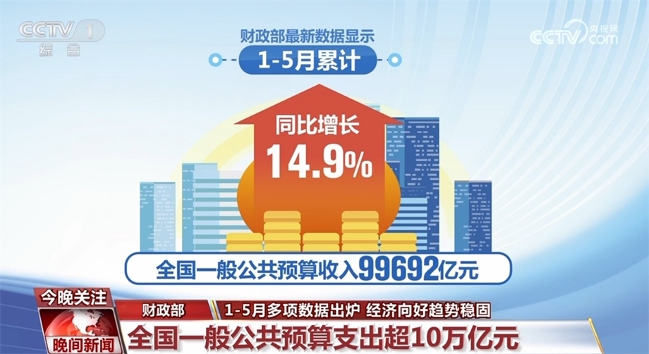 財(cái)政部最新數(shù)據(jù)顯示,1—5月累計(jì),全國一般公共預(yù)算收入99692億元,同比增長14.9%;全國一般公共預(yù)算支出104821億元,同比增長5.8%。教育、科學(xué)技術(shù)、社會(huì)保障和就業(yè)、衛(wèi)生健康等支出,同比增長均超過5%。