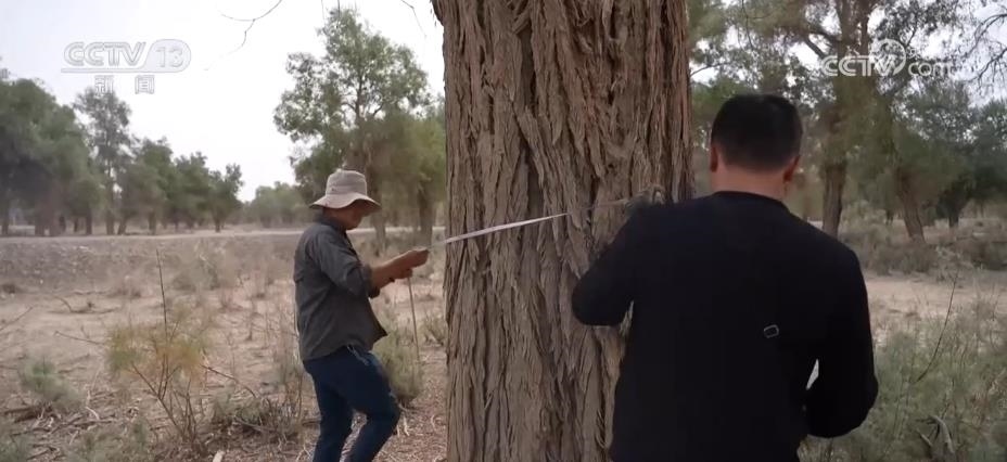 有人守護胡楊林的生長環(huán)境,也有人專門記錄胡楊樹的生長情況。在沙雅縣境內的胡楊林里分布著很多超過百歲樹齡的胡楊樹,最近一段時間,新疆林業(yè)規(guī)劃院的科研人員正在對這里的胡楊林古樹群進行調查建檔。