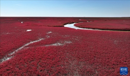 近日,遼寧省盤錦紅海灘國家風(fēng)景廊道內(nèi)的堿蓬草迎來最佳觀賞期,吸引了眾多游客前來觀賞游玩。