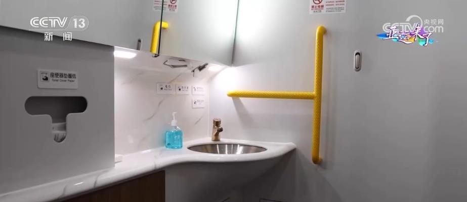動(dòng)車(chē)組的4號(hào)車(chē)廂為無(wú)障礙車(chē)廂,有無(wú)障礙衛(wèi)生間、輪椅存放區(qū),還有盲文標(biāo)識(shí)以及相應(yīng)的設(shè)施設(shè)備,為乘客提供無(wú)障礙出行服務(wù)。