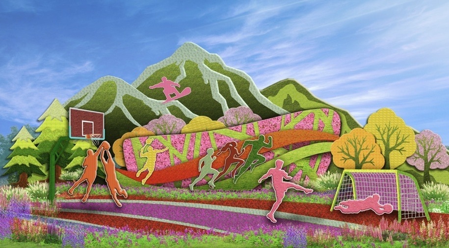 6,西單東北角的“全民健身”花壇頂高8.5米,以豐富多彩的全民健身為題材,配以籃球、羽毛球、跑步、滑雪等運(yùn)動場景,寓意全民健身共享美好生活。