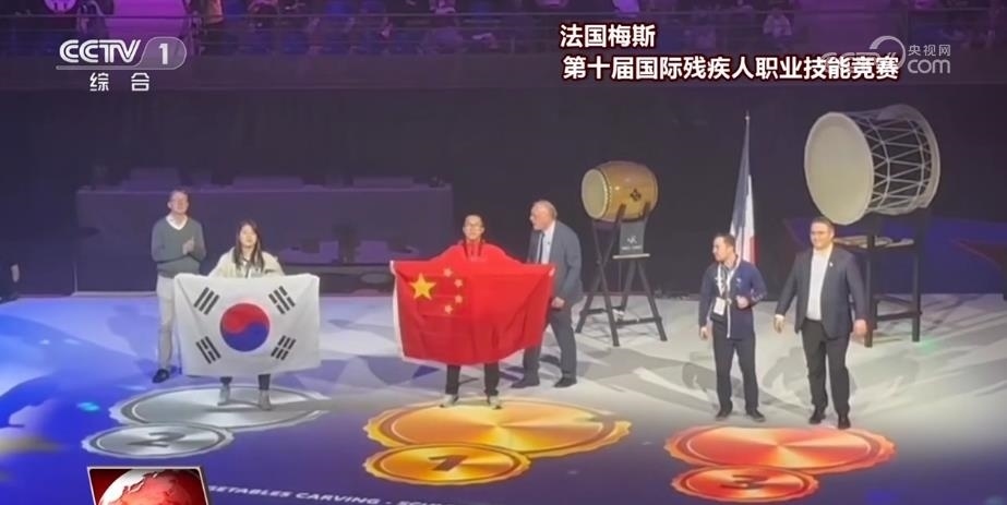 功夫不負(fù)有心人,鄭云海的雕刻技藝不斷精進(jìn),他也開始自主設(shè)計(jì)創(chuàng)作作品,并斬獲了多項(xiàng)國內(nèi)比賽冠軍。2023年3月,在法國梅斯舉辦的第十屆國際殘疾人職業(yè)技能競賽食品雕刻項(xiàng)目比賽中,他奪得金牌,成為食品雕刻界的世界冠軍。