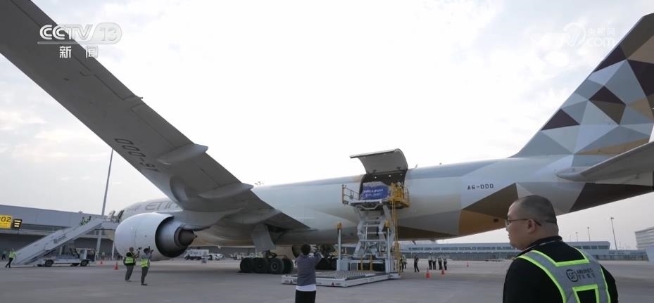 作為亞洲首個專業(yè)貨運機場,鄂州花湖機場的國際貨運班機一片繁忙。這種裝有100噸左右跨境物流包裹的貨運飛機,10個多小時后就能抵達德國法蘭克福機場。像這樣的國際貨運航班,鄂州花湖機場每周要起落28架次,截至2023年8月,已累計將超過1.5萬噸貨物運往海外。