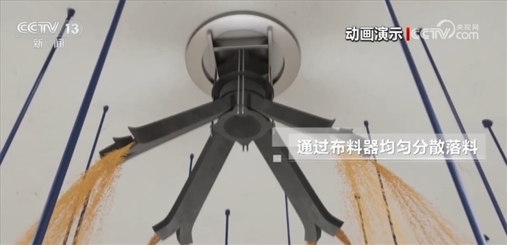 倉內頂部安裝的布料器能讓大豆入倉時均勻、分散下落,減少糧食的自動分級和雜質的聚集,更有利于后續(xù)的安全保管。