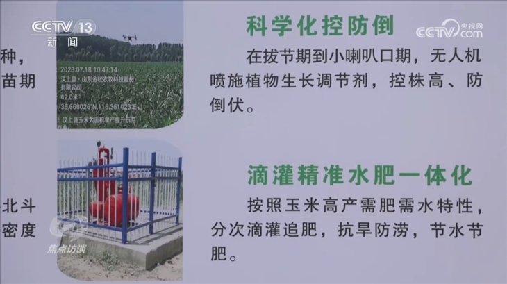 郭波波所在的汶上縣作為國家玉米單產(chǎn)提升整建制推進縣,有5萬畝玉米單產(chǎn)提升示范區(qū),今年第一次試驗推廣密植滴灌高產(chǎn)精準調(diào)控技術(shù)。種植戶們擔心密植后的玉米出現(xiàn)營養(yǎng)不良和倒伏,這項技術(shù)就是要解決這個痛點。通過鋪在地上的滴管,對玉米進行水肥一體化滴灌,讓玉米“少食多餐、食量均勻”,既節(jié)肥節(jié)水,又能補充足夠的營養(yǎng),從而增加玉米的抗倒伏能力。