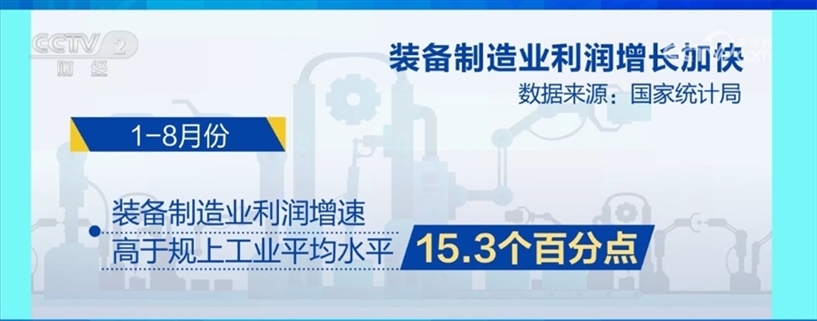 特別是裝備制造業(yè)利潤增長加快。1—8月份,裝備制造業(yè)利潤增速高于規(guī)上工業(yè)平均水平15.3個百分點。其中,電氣機械、鐵路船舶航空航天運輸設(shè)備行業(yè)利潤保持較高增速。
