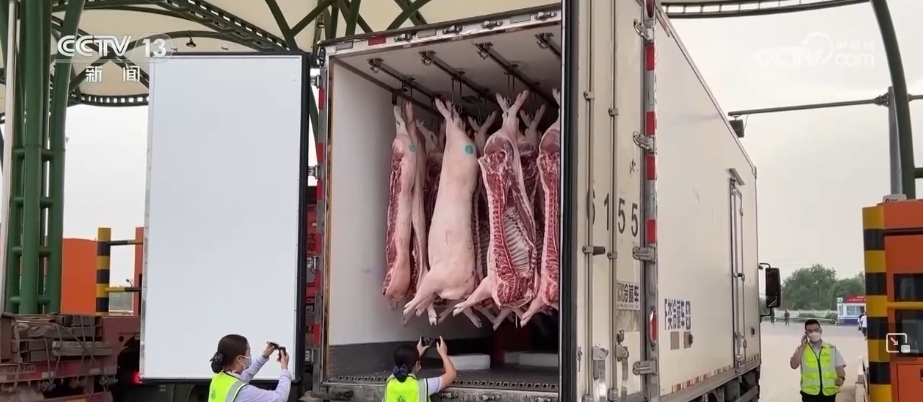 為了保障肉品質(zhì)量,在這家保供基地生豬屠宰后,會(huì)馬上進(jìn)入預(yù)冷車間,預(yù)冷2小時(shí)之后再轉(zhuǎn)運(yùn)到冷鏈車上,運(yùn)輸全程制冷。另外,當(dāng)?shù)卣瓦\(yùn)管部門也同步強(qiáng)化服務(wù),在檢疫、運(yùn)輸、轉(zhuǎn)運(yùn)等多個(gè)環(huán)節(jié)提供便利。