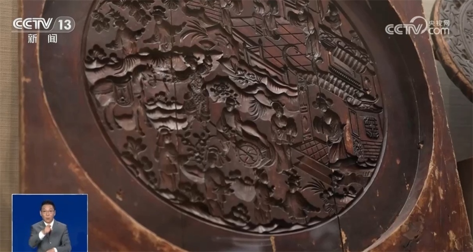 總臺(tái)記者 羅子瑛:瞧,我發(fā)現(xiàn)的這塊月餅?zāi)>咦龀鰜?lái)的月餅直徑能夠達(dá)到五六十公分,上面雕刻的花紋記錄了一位新科狀元回家為母親祝壽的場(chǎng)景。可以說(shuō)月餅這樣一種食物,是用最樸素的方式記錄了人們的美好生活。