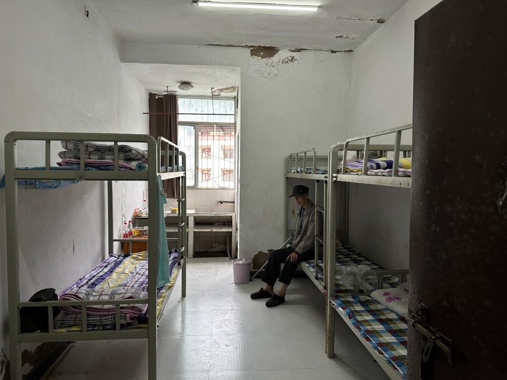 太白西村4組村民譚建和老爺爺行動不便,坐在鋪著干凈格子床單的宿舍床上望向窗外。“前天下午,社區(qū)的車來接的我和老伴,安置點吃喝都好,宿舍住起來也挺舒服。兒子們擔(dān)心我,他們過不來,一天就打好幾通電話,我說都好著呢、好著呢?!弊T爺爺說。
