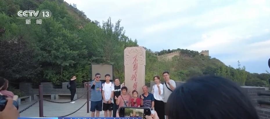 除了觀賞之外,八達嶺長城還為游客提供了豐富的消費體驗。在文化街區(qū)里,正在上演《夢回長城,八方來鶴》為主題的演出,游客們可以和京劇、地方歌舞的表演者互動。絢爛的燈光表演則為古老的長城增添了不少現(xiàn)代感與時尚感。穿上漢服,買一面國旗,品嘗一下長城的文創(chuàng)雪糕,市集小店里洋溢著濃濃的煙火氣。