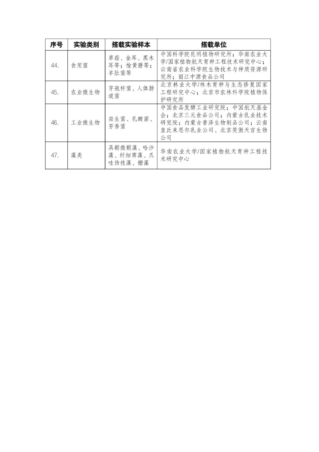 央視網(wǎng)消息:據(jù)中國載人航天公眾號(hào)消息,7月19日,中國載人航天工程辦公室公布神舟十六號(hào)載人飛船航天育種實(shí)驗(yàn)項(xiàng)目清單,詳情如下:
