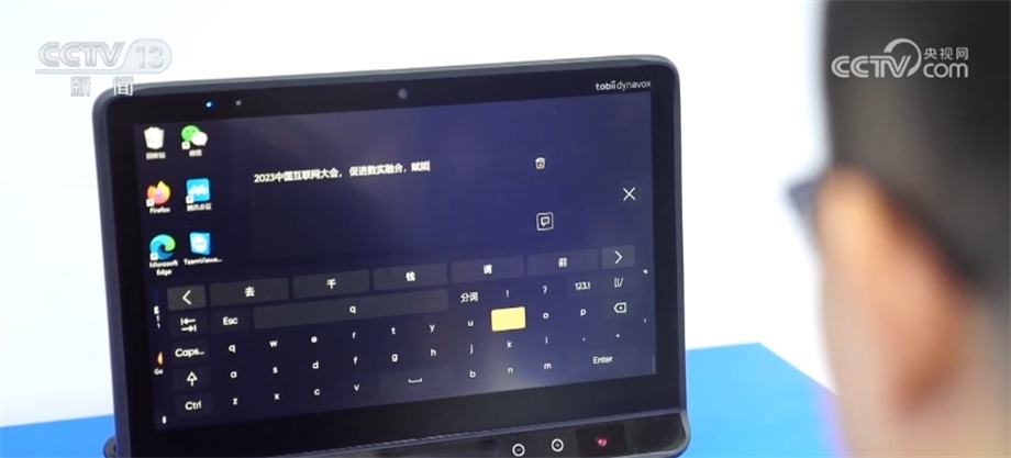 這位技術(shù)人員正在演示“眼動輸入法”,通過眼球轉(zhuǎn)動和凝視來操作電腦完成輸入。這種眼球追蹤技術(shù)通過眼控儀上配備的多組近紅外光源,借助精密算法得到目光注視點(diǎn)坐標(biāo)位置,從而讓電腦知道眼睛在看哪里,實(shí)現(xiàn)用目光操作電腦,取代傳統(tǒng)的鍵盤鼠標(biāo)。