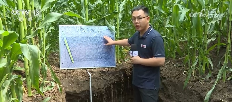 這是實施保護性耕作10年時間黑土地的剖面,這里是我們拍攝到的同一時期沒有實施保護性耕作的土壤剖面。能夠發(fā)現(xiàn),玉米根系有非常明顯的不同,實施保護性耕作的地塊玉米根系達到了將近1米,而沒有實施保護性耕作的地塊,根系是在半米。秸稈留在田中,可以起到蓄水保墑的作用,土壤會更加疏松,更有利于作物根系的深扎。同時,秸稈腐爛之后會不斷增加土壤中的有機質(zhì)含量,進一步培肥地力。經(jīng)過連續(xù)十年的監(jiān)測,實施保護性耕作之后土壤有機質(zhì)的含量提高了一倍,每立方米蚯蚓數(shù)量增加到60多條,是傳統(tǒng)種植地塊的10倍以上。