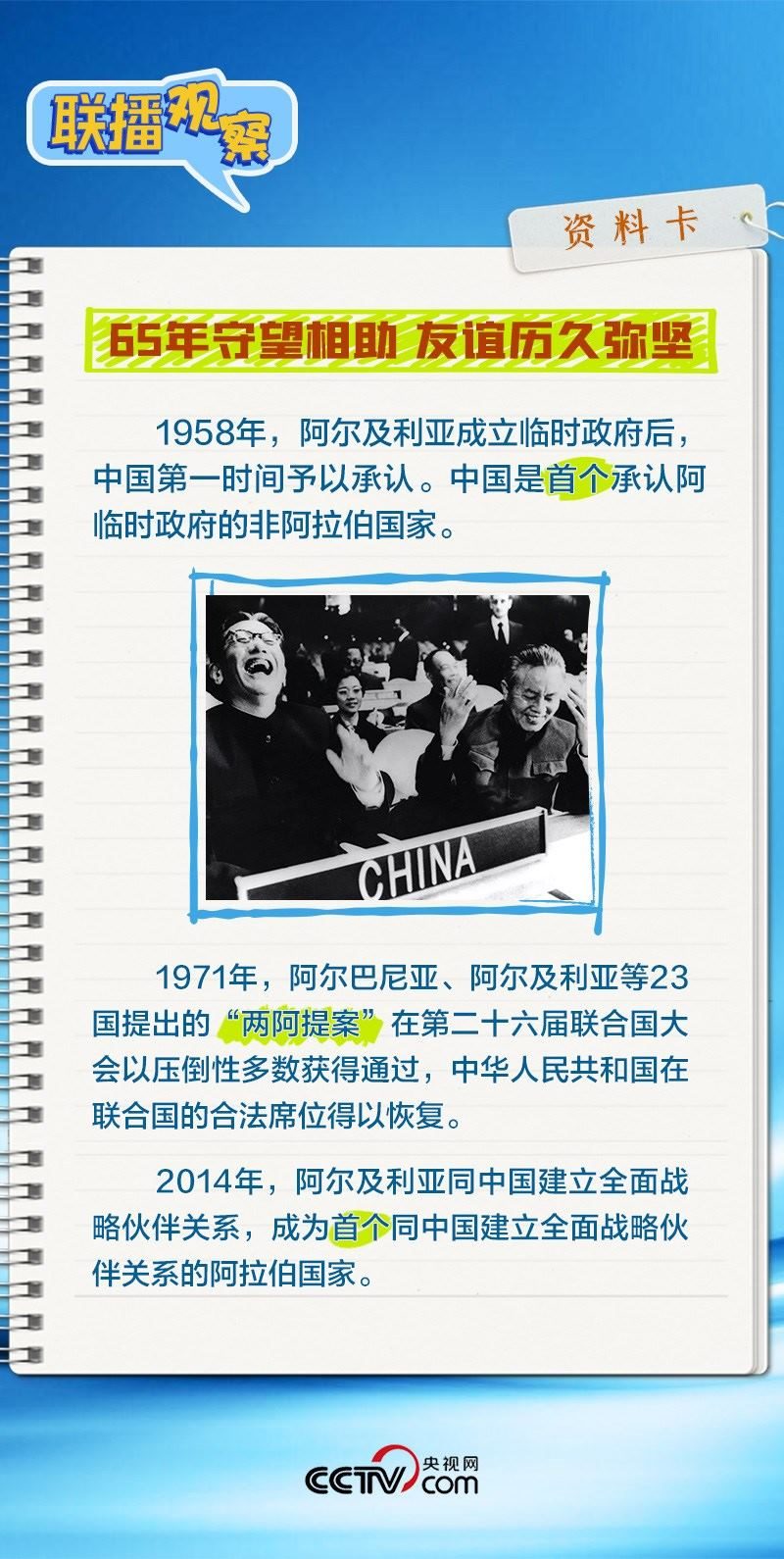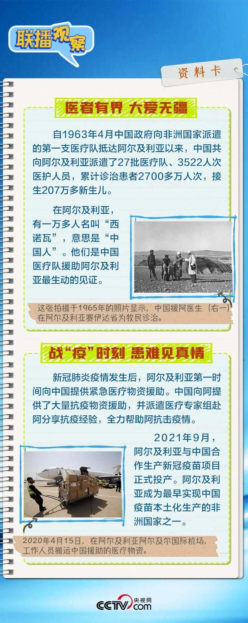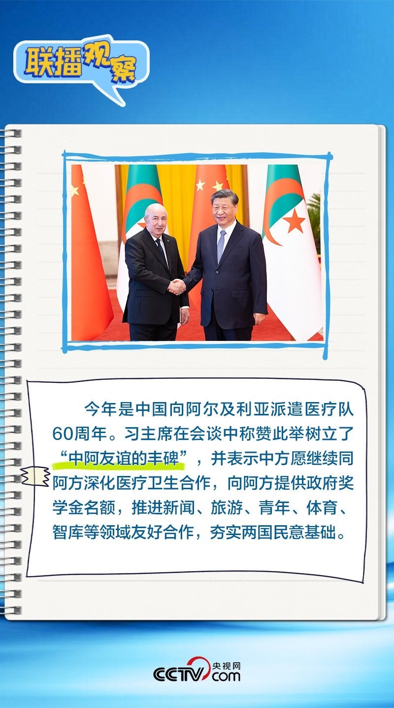 會談中,習主席特別提到,今年是中國向阿爾及利亞派遣醫(yī)療隊60周年,并稱贊此舉樹立了“中阿友誼的豐碑”。中阿傳統(tǒng)友誼深厚,兩國始終相互尊重、平等相待、彼此支持,締造了一段段友好交往的佳話。