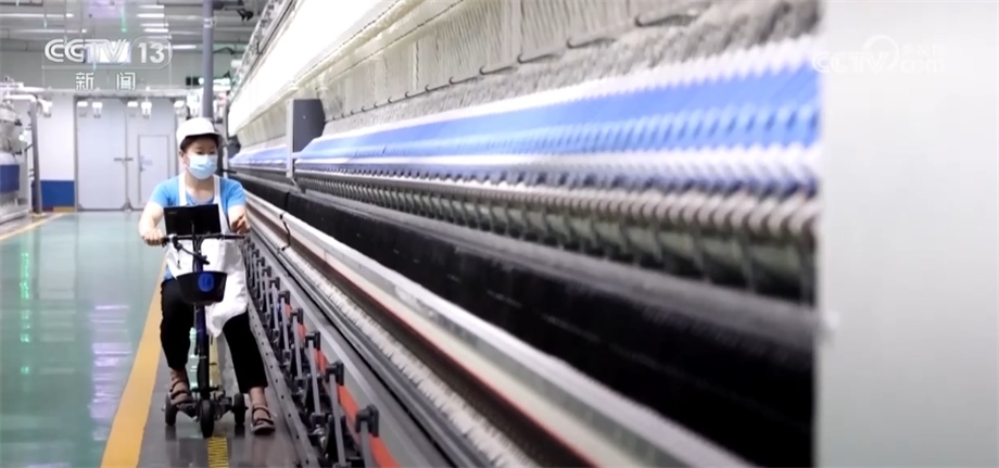 總臺央視記者 鄭怡哲:用于服裝的精梳棉紗,從棉花種植、軋花到加工成粗紗、細(xì)紗,再到成品運(yùn)輸、入庫,全流程下來,1千克棉紗的碳足跡值僅為4公斤左右的二氧化碳。在這條直徑不到0.1mm的紗線上,要滿足強(qiáng)度、透氣、舒適性等指標(biāo),同時(shí)也要兼顧節(jié)能、環(huán)保和碳排放。要在這條細(xì)細(xì)的紗線上做出如此大的文章,離不開企業(yè)的高質(zhì)量發(fā)展和科技的支持。