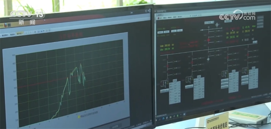 總臺(tái)記者 劉澤耕:我們現(xiàn)在來(lái)到的是龍羊峽水光互補(bǔ)光伏電站中控室,這塊屏幕上正在變化的數(shù)據(jù)是光伏電站發(fā)電的實(shí)時(shí)數(shù)據(jù)。光伏發(fā)電存在間歇性、波動(dòng)性和隨機(jī)性等問(wèn)題。在夜間,光伏電站出力為零,遇到陰雨天氣,云層遮擋住太陽(yáng),光伏電站發(fā)電能力也會(huì)迅速下降。這些因素都會(huì)導(dǎo)致光伏發(fā)電產(chǎn)生的電流呈現(xiàn)鋸齒狀,不僅會(huì)對(duì)電網(wǎng)造成沖擊,而且電壓不穩(wěn)定也會(huì)影響生產(chǎn)生活。而龍羊峽水電站水光互補(bǔ),完美解決了光伏發(fā)電“靠天吃飯”的難題。