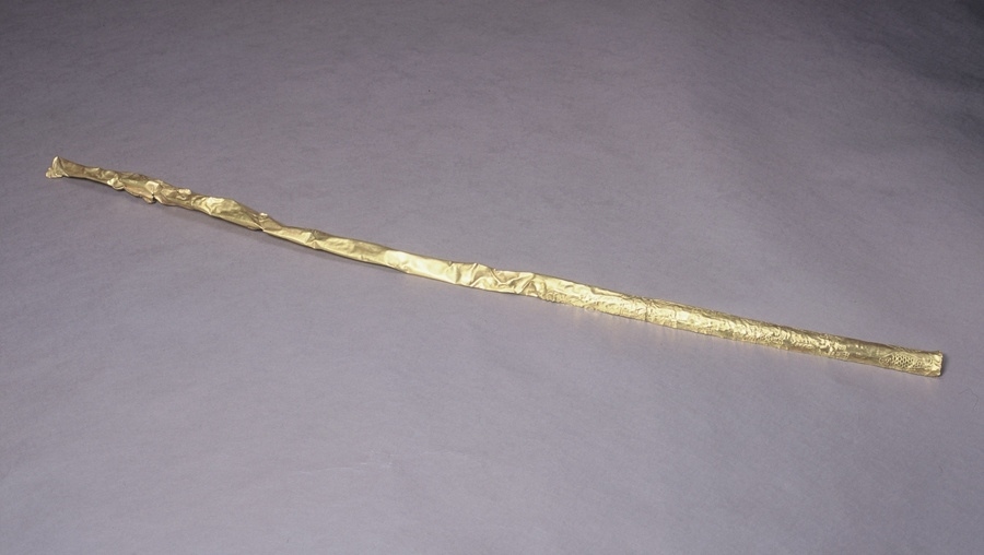第三件是三星堆的金杖,它是古蜀國王權的象征。