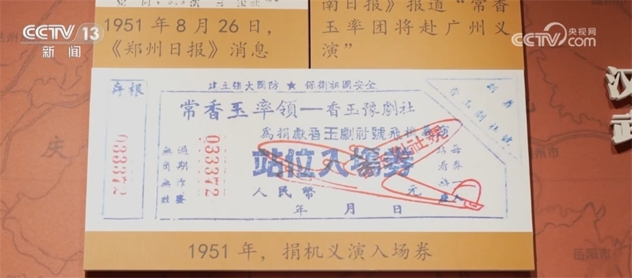 從1951年8月到1952年2月,香玉劇社行程萬里,義演了170多場,從劇社成員到普通觀眾,大家踴躍捐獻,在半年的時間里實現(xiàn)了義演募捐15.2億多人民幣(舊幣)的計劃,順利完成了向中國人民志愿軍捐獻戰(zhàn)斗機的愛國行動。