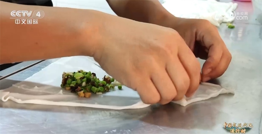 除了“射手王”,網(wǎng)友們還給他起了一個(gè)外號(hào)叫“卷粉王”。今年34歲的董永恒在縣城開(kāi)了一家小店,售賣(mài)當(dāng)?shù)貍鹘y(tǒng)特色美食卷粉。在球場(chǎng)上他腳底利索,沒(méi)想到手上更利落,董永恒一天要包1000多個(gè)卷粉。