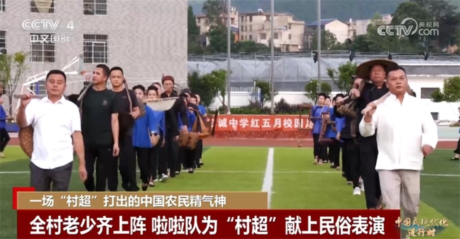 央視網(wǎng)消息:黨的二十大報(bào)告指出,中國(guó)式現(xiàn)代化是物質(zhì)文明和精神文明相協(xié)調(diào)的現(xiàn)代化。在廣大農(nóng)村地區(qū),農(nóng)民精神文化生活狀況是鄉(xiāng)村振興乃至經(jīng)濟(jì)社會(huì)發(fā)展全局的重要衡量指標(biāo)。近年來(lái),“土味”十足的“村BA”“村超”等農(nóng)民自發(fā)舉行的體育賽事火爆全網(wǎng)。正在貴州榕江舉行的“村超”本周六(7月29日)將迎來(lái)總決賽,今天的系列節(jié)目《中國(guó)式現(xiàn)代化進(jìn)行時(shí)》,我們跟隨記者的鏡頭去看看“村超”的比賽盛況。