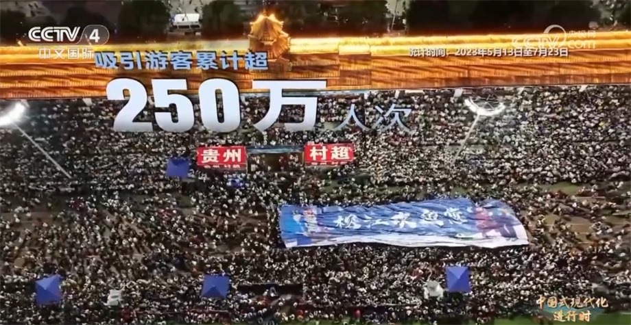 據(jù)統(tǒng)計(jì),自今年5月“村超”開(kāi)賽至7月上旬,榕江縣累計(jì)吸引游客超250萬(wàn)人次,實(shí)現(xiàn)旅游綜合收入28.39億元?!按宄辈粌H展現(xiàn)了當(dāng)代中國(guó)農(nóng)民豐富的精神文化生活,更助推了鄉(xiāng)村振興。