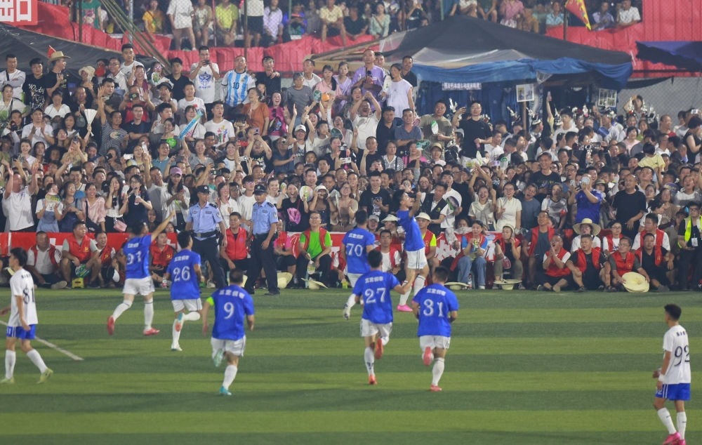 事實(shí)上,從5月13日舉辦以來,“村超”球場(chǎng)上的激烈對(duì)抗就一直在不斷上演?!笆澜绮ā薄百N地?cái)亍薄皥A月彎刀”……參賽的“村民選手”們屢現(xiàn)精彩進(jìn)球。