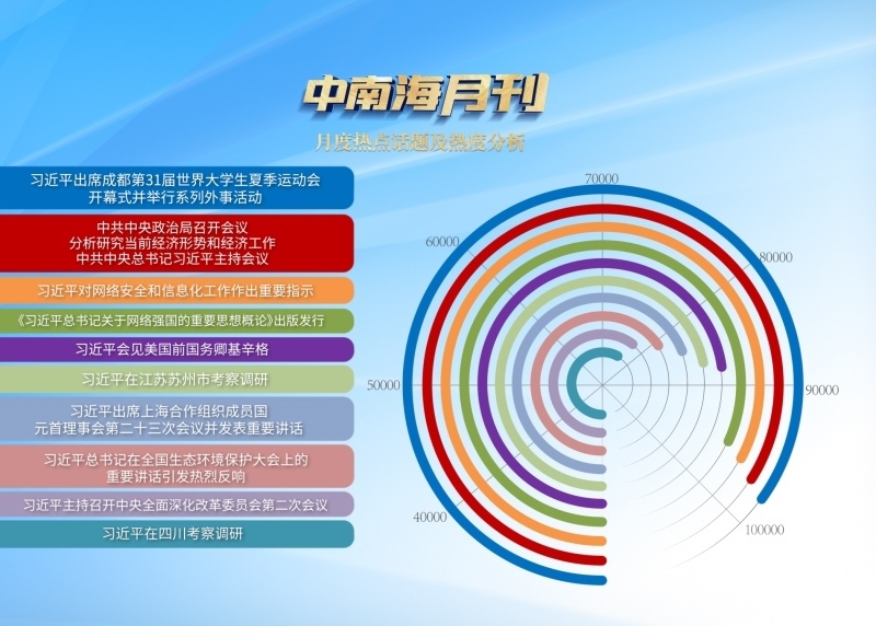 央視網(wǎng)《中南海月刊》運用智能大數(shù)據(jù),與您一起回眸七月,從關(guān)系到新征程開局起步、中國式現(xiàn)代化行穩(wěn)致遠(yuǎn)的大事要事中,感受實干為筆、擔(dān)當(dāng)為墨,看宏偉藍(lán)圖如何轉(zhuǎn)化為高質(zhì)量發(fā)展“實景畫”。