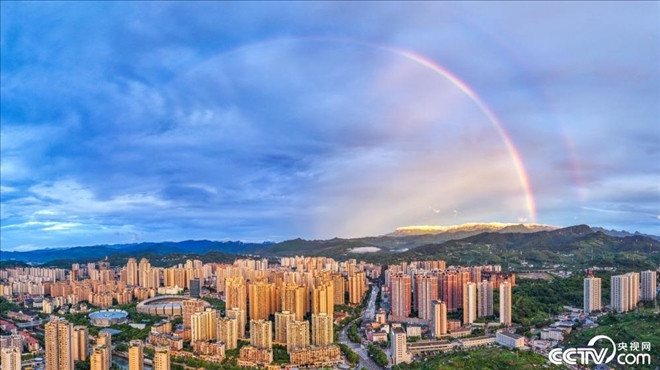 重慶金佛山上空現(xiàn)雙彩虹景觀。